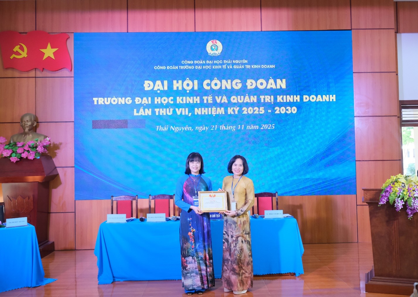 Tại Đại hội, PGS.TS Hoàng Thị Thu - một trong những đoàn viên có nhiều đóng góp xuất sắc trong công tác chuyên môn, nghiên cứu khoa học và hoạt động Công đoàn đã được vinh danh, trao Giấy khen của Công đoàn Đại học Thái Nguyên với danh hiệu “Điển hình tiên tiến giai đoạn 2020 - 2025”.