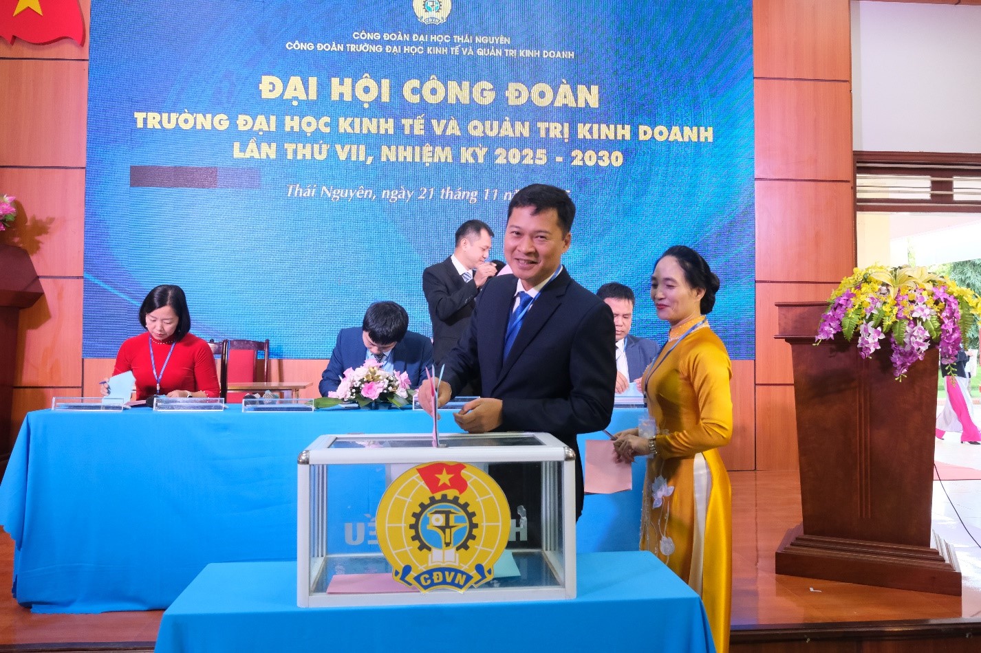 26/11/2025Ngày 21 tháng 11 năm 2025, trong không khí dân chủ, đoàn kết và đầy trách nhiệm, 150 đại biểu đại diện cho toàn thể đoàn viên Công đoàn Trường đã tham dự Đại hội Công đoàn Trường Đại học Kinh tế và Quản trị kinh doanh lần thứ VII, nhiệm kỳ 2025 - 2030. Đây là sự kiện có ý nghĩa quan trọng, đánh dấu bước ngoặt của tổ chức Công đoàn Trường trong giai đoạn phát triển tiếp theo.
