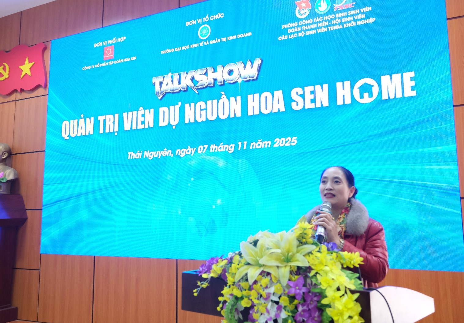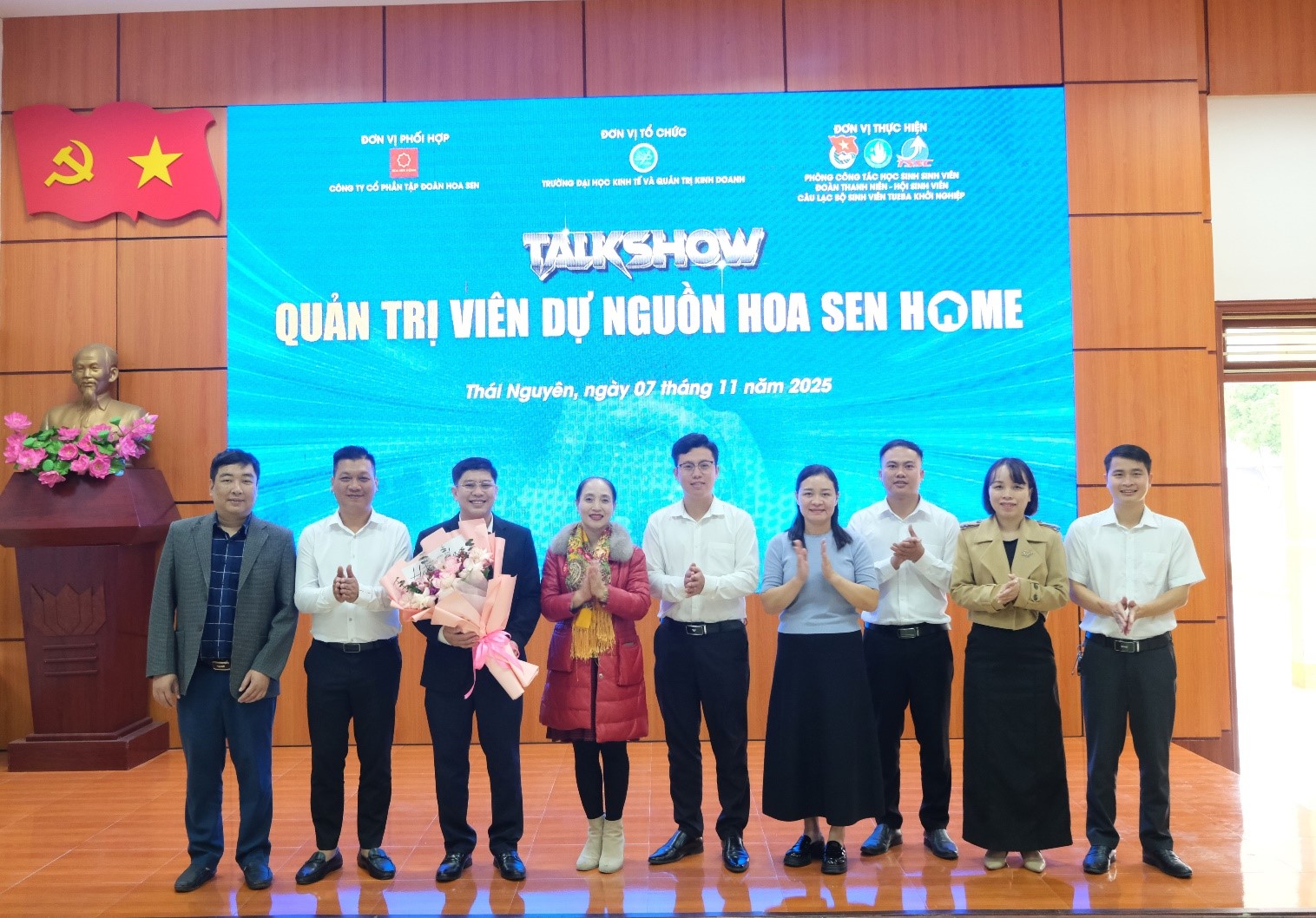 11/11/2025Nhằm tạo điều kiện để Sinh viên được tiếp cận môi trường doanh nghiệp thực tế, rèn luyện kỹ năng nghề nghiệp và nắm bắt cơ hội việc làm, ngày 07/11/2025, Trường Đại học Kinh tế và Quản trị Kinh doanh (TUEBA) phối hợp cùng Công ty Cổ phần Tập đoàn Hoa Sen tổ chức Talkshow: “Quản trị viên dự nguồn Hoa Sen Home”.