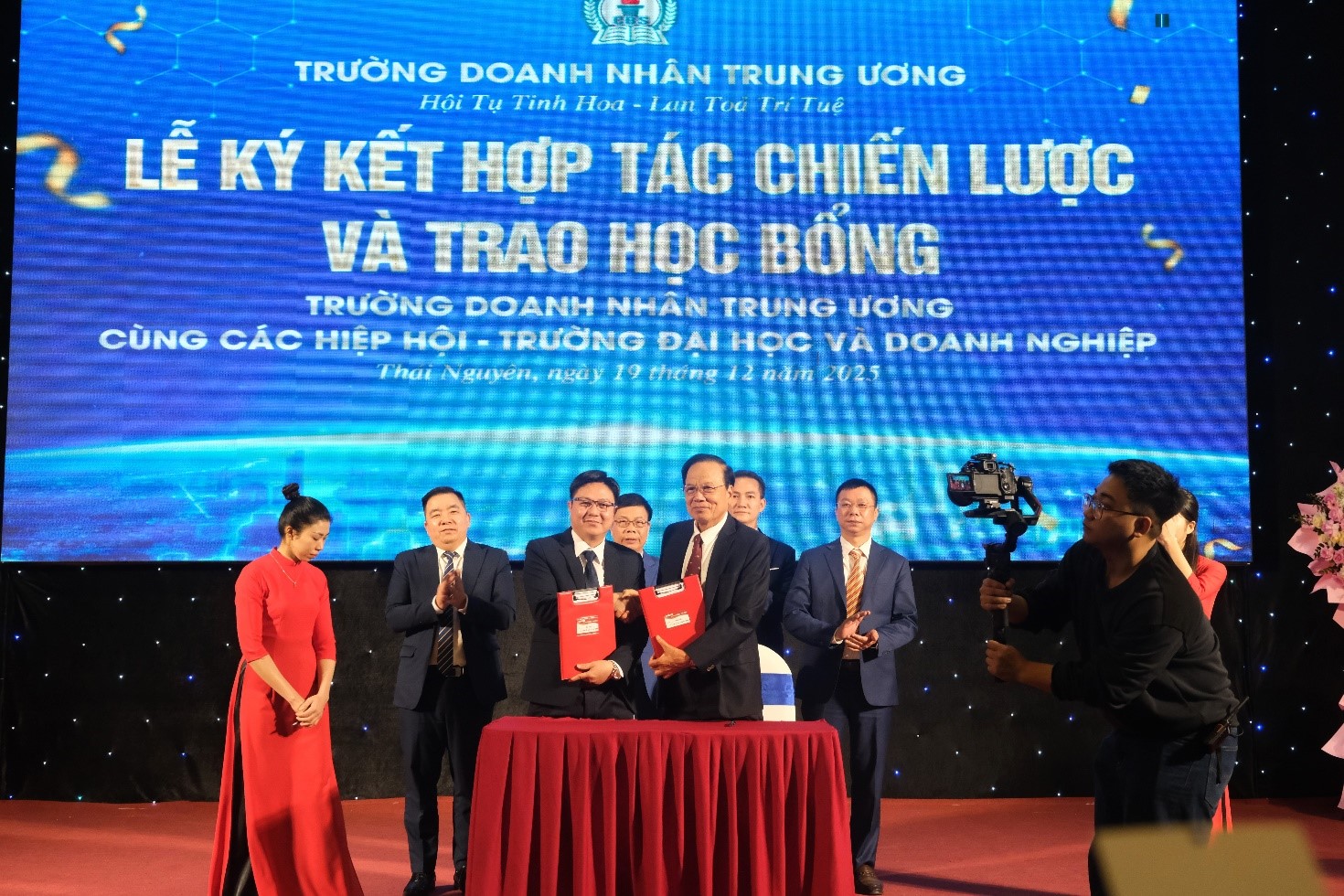 Ngay sau lễ ký kết, Trường Doanh nhân Trung ương đã trao học bổng trị giá 2 tỷ đồng cho Trường Đại học Kinh tế và Quản trị kinh doanh nhằm hỗ trợ sinh viên trong học tập và phát triển năng lực.
