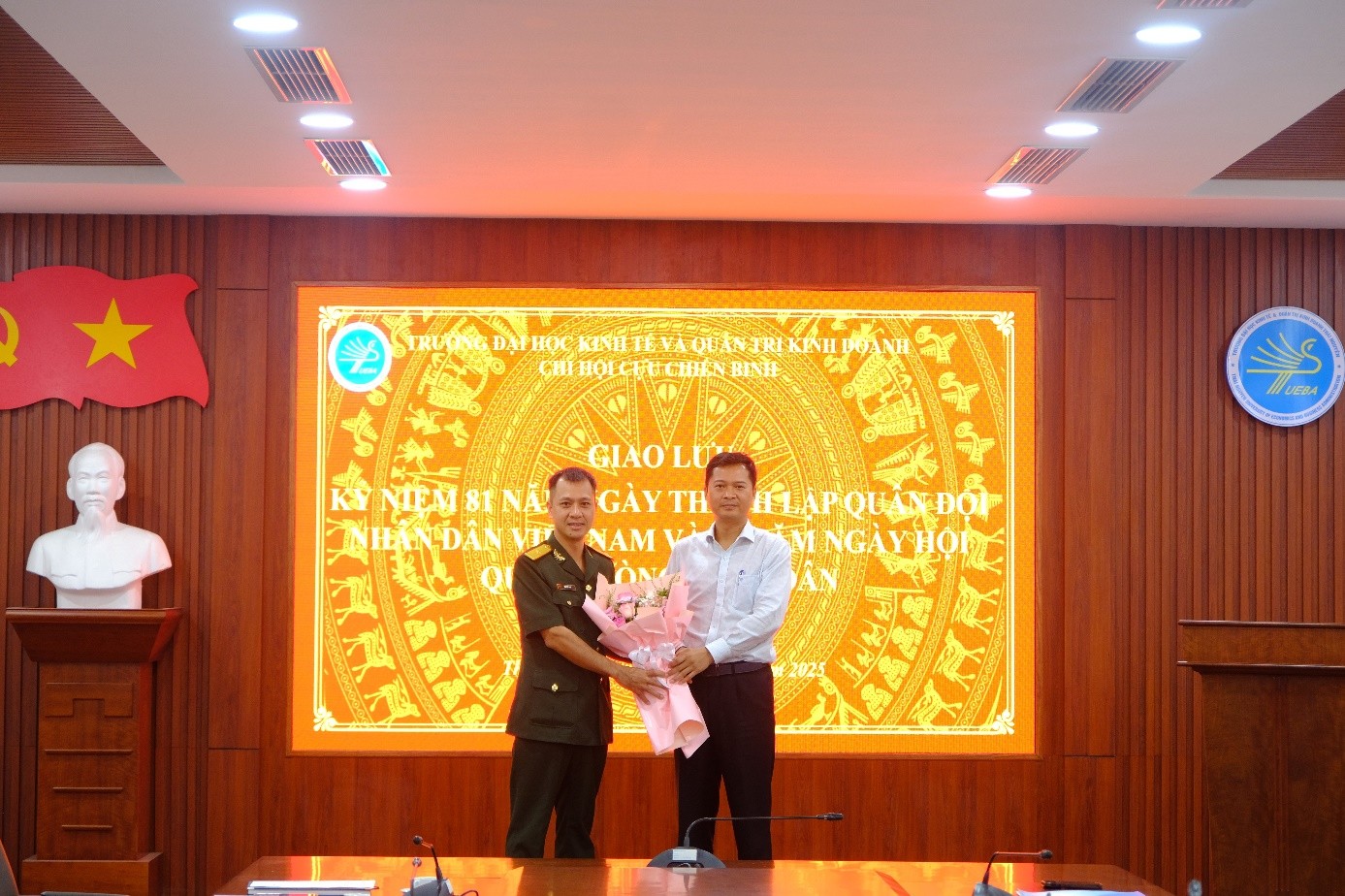 22/12/2025Trong không khí trang nghiêm, tự hào của những ngày tháng 12 lịch sử, chiều ngày 22/12/2025, Trường Đại học Kinh tế và Quản trị kinh doanh long trọng tổ chức Chương trình giao lưu kỷ niệm 81 năm Ngày thành lập Quân đội nhân dân Việt Nam (22/12/1944 - 22/12/2025) và 36 năm Ngày hội Quốc phòng toàn dân (22/12/1989 - 22/12/2025).