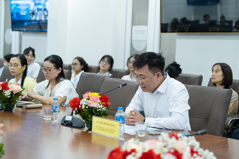TS. Đỗ Đình Long – Bí thư Đảng ủy, Chủ tịch Hội đồng trường phát biểu khai mạc Hội thảo