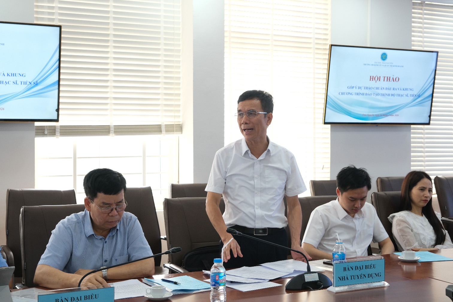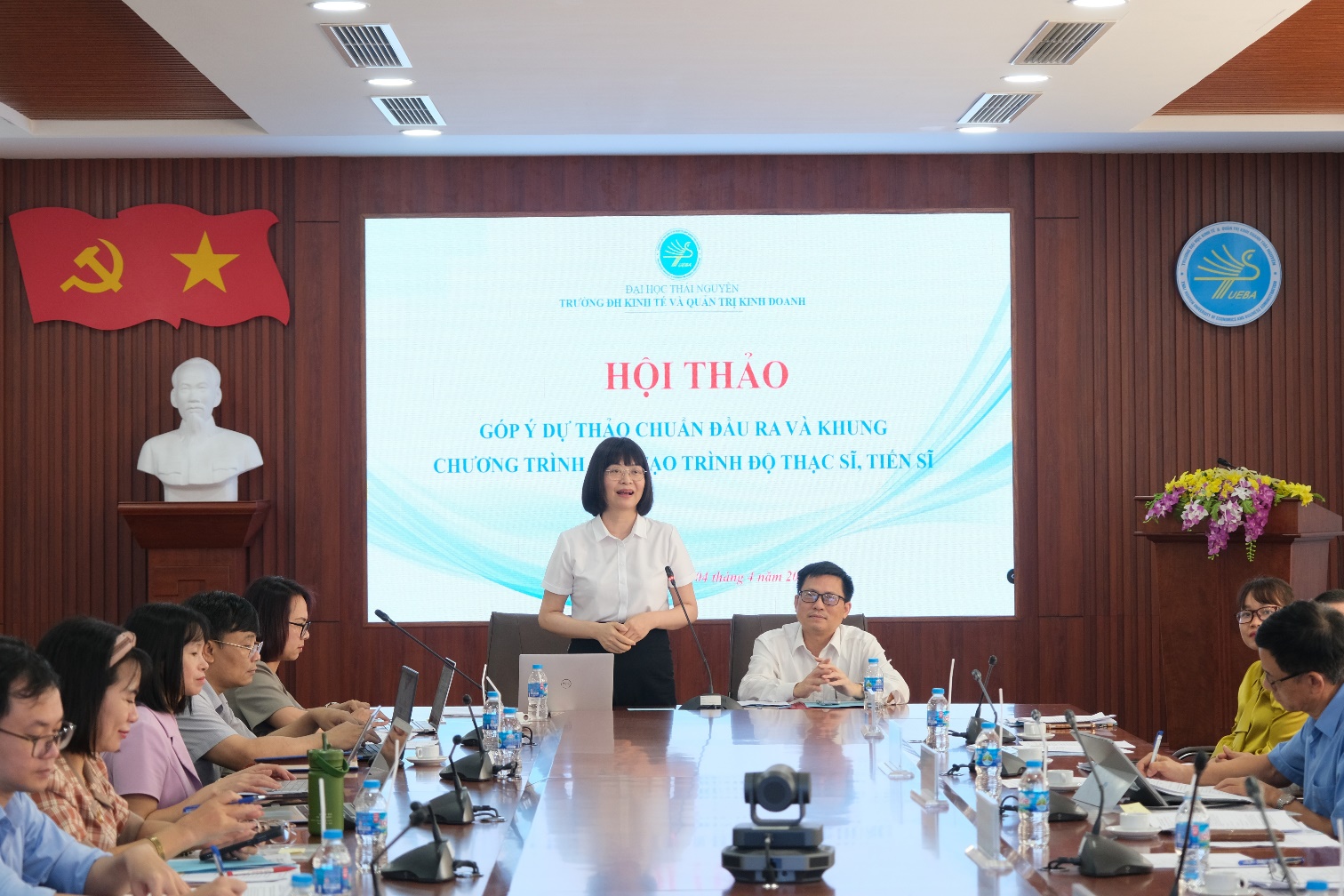 Ngày 04/4/2026, Trường Đại học Kinh tế và Quản trị kinh doanh (TUEBA) đã tổ chức Hội thảo lấy ý kiến góp ý cho dự thảo “Chuẩn đầu ra (CĐR) và Khung chương trình đào tạo (CTĐT) trình độ thạc sĩ, tiến sĩ”. Hội thảo là hoạt động quan trọng nhằm hoàn thiện hệ thống đào tạo sau đại học theo hướng khoa học, chuẩn hóa, đáp ứng các tiêu chuẩn kiểm định chất lượng và tiệm cận yêu cầu thực tiễn của thị trường lao động.