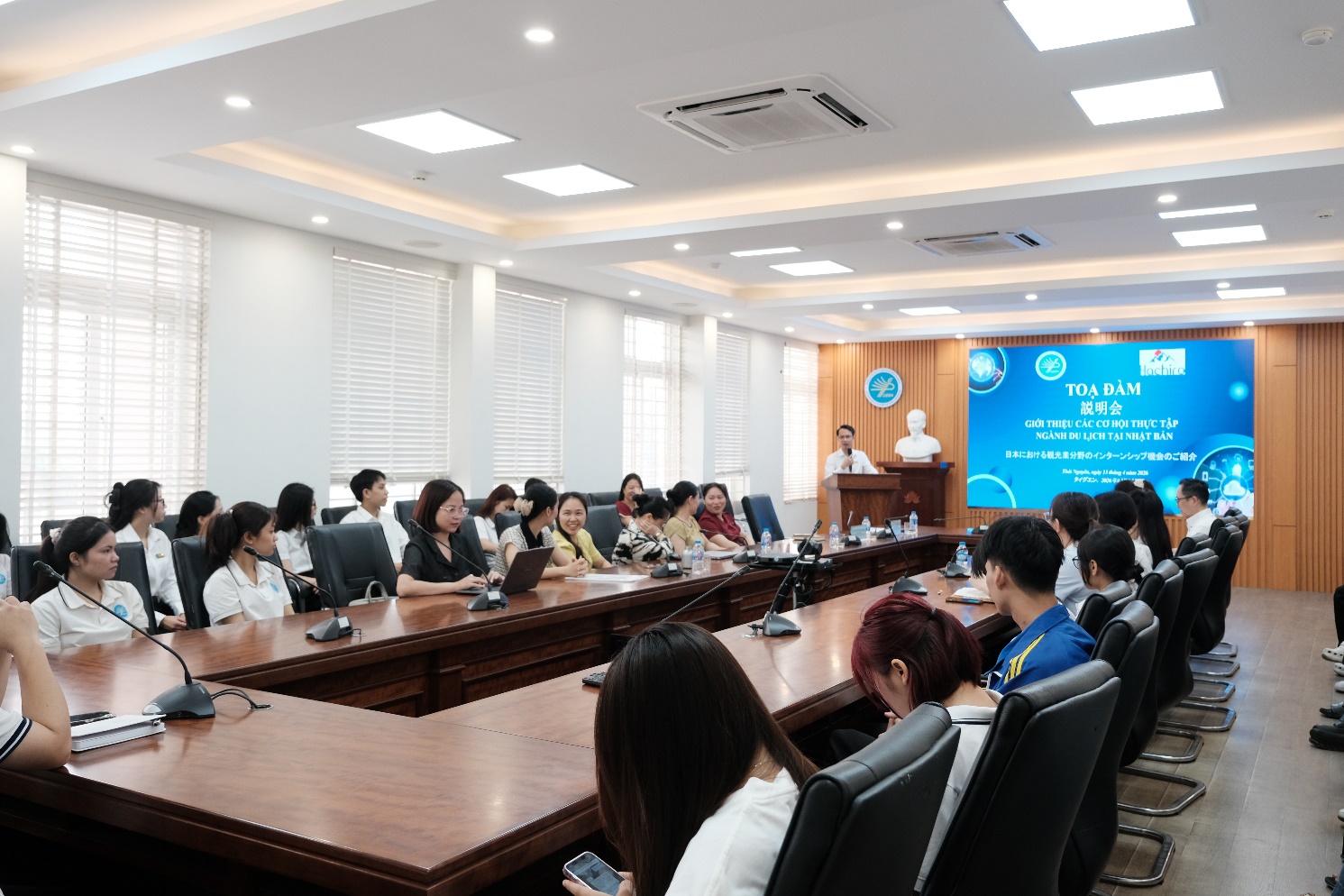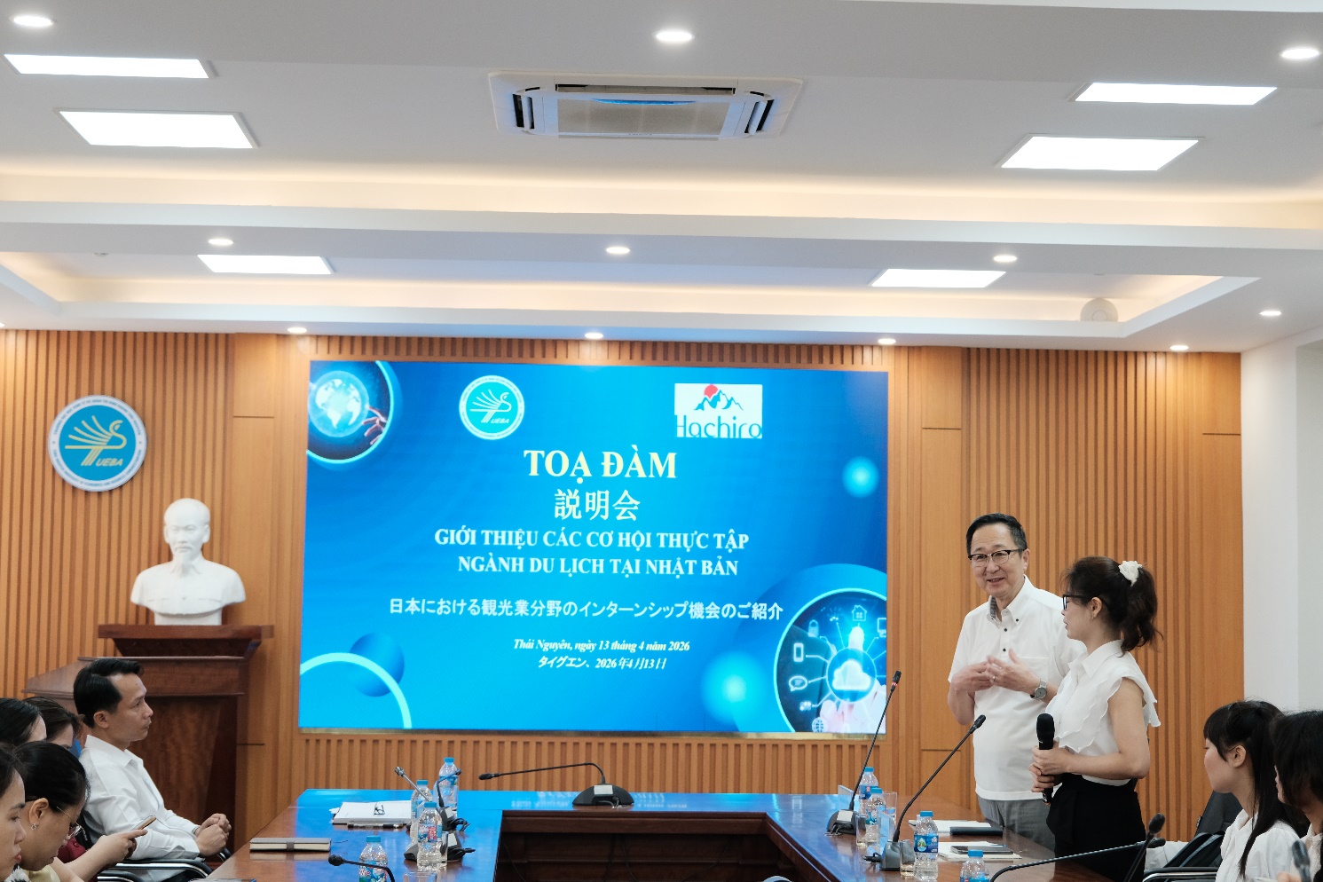 Sáng ngày 13/4/2026, Nhà trường đã phối hợp cùng Công ty TNHH cung ứng nhân lực Hachiro tổ chức tọa đàm “Giới thiệu cơ hội thực tập cho sinh viên tại Nhật Bản” dành cho sinh viên ngành Quản trị dịch vụ du lịch và lữ hành. Chương trình là cầu nối quan trọng giúp sinh viên tiếp cận trực tiếp với các cơ hội thực tập tại môi trường quốc tế, đồng thời cung cấp những thông tin chính xác, toàn diện về điều kiện tham gia, nội dung công việc cũng như định hướng phát triển nghề nghiệp.