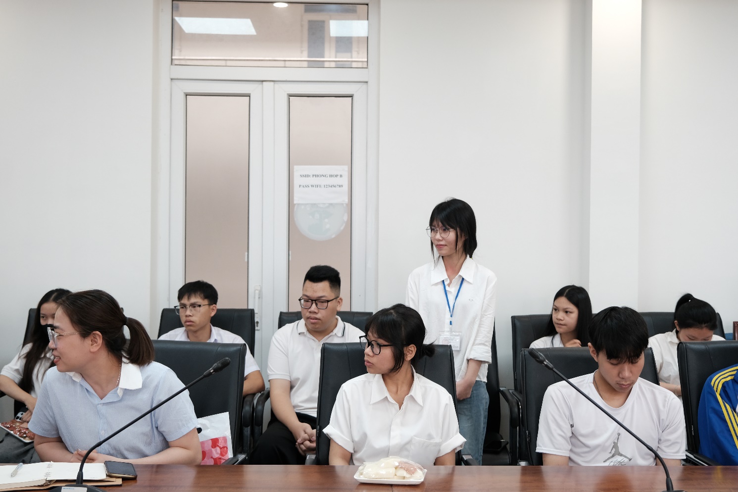 Không khí chương trình trở nên sôi nổi hơn với phần trao đổi, thảo luận giữa sinh viên và đại diện doanh nghiệp. Nhiều câu hỏi liên quan đến điều kiện tham gia, kỹ năng cần thiết, môi trường làm việc và cơ hội phát triển đã được giải đáp cụ thể, giúp sinh viên tháo gỡ những băn khoăn và tự tin hơn trong việc định hướng tương lai.
