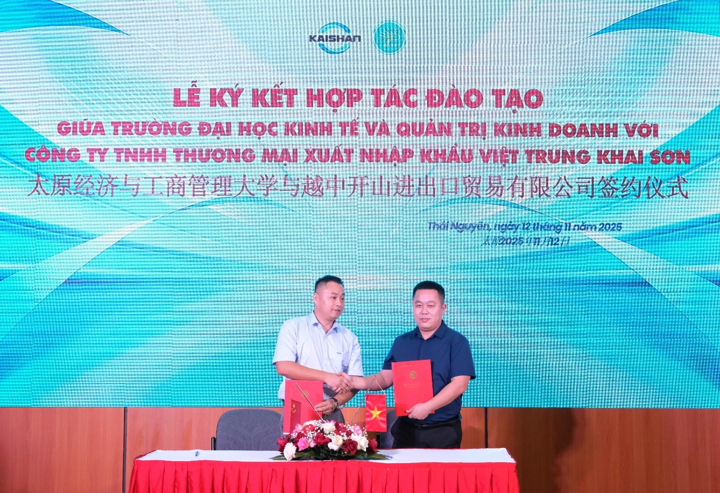 14/11/2025Ngày 12/11/2025, Trường Đại học Kinh tế và Quản trị Kinh doanh (TUEBA) long trọng tổ chức Lễ ký kết Thỏa thuận hợp tác đào tạo với Công ty TNHH Thương mại Xuất Nhập khẩu Việt Trung Khai Sơn, đồng thời giới thiệu Chương trình kết nối hợp tác phát triển thị trường công nghiệp khai khoáng và chế tạo tại tỉnh Thái Nguyên.