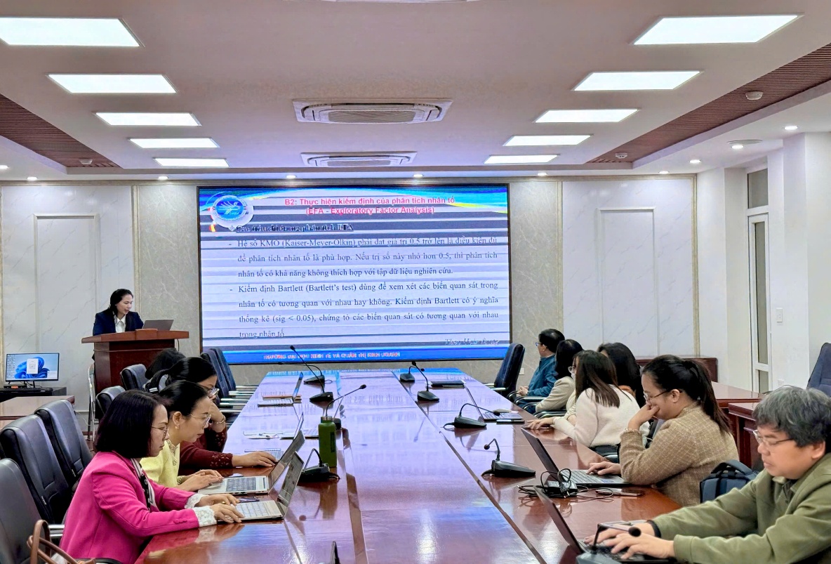 Một trong những điểm nhấn của buổi sinh hoạt là việc phân tích sâu các tiêu chí đánh giá trong EFA như hệ số KMO, kiểm định Bartlett, Eigenvalue và hệ số tải nhân tố, qua đó giúp làm rõ tính phù hợp của mô hình và dữ liệu nghiên cứu. Đồng thời, kết quả hồi quy đa biến cũng chỉ ra vai trò và mức độ ảnh hưởng của từng yếu tố đến sự hài lòng của người dân, cung cấp cơ sở khoa học cho việc hoàn thiện chính sách công.