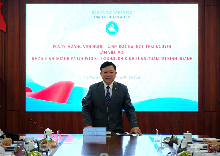 22/01/2026Ngày 21/01/2026, tại Trường Đại học Kinh tế và Quản trị kinh doanh (TUEBA), Đoàn công tác của Đại học Thái Nguyên do PGS.TS. Hoàng Văn Hùng - Giám đốc Đại học Thái Nguyên làm trưởng đoàn đã chủ trì buổi làm việc với Khoa Kinh doanh và Logistics- Trường Đại học Kinh tế và QTKD. Buổi làm việc nhằm trao đổi, đánh giá toàn diện tình hình hoạt động của Khoa, đồng thời lắng nghe các ý kiến, đề xuất để định hướng phát triển trong giai đoạn tới, phù hợp với chiến lược chung của Đại học Thái Nguyên và Nhà trường.