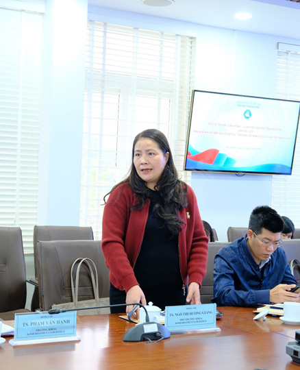 Tiếp đó, TS. Phạm Văn Hạnh - Trưởng Khoa Kinh doanh và Logistics đã báo cáo khái quát về tình hình và những kết quả nổi bật của Khoa. Hiện nay, Khoa có 02 bộ môn với 39 giảng viên, đang quản lý và đào tạo trên 2.000 sinh viên thuộc các ngành: Quản trị kinh doanh; Logistics và Quản lý chuỗi cung ứng; Thương mại điện tử; Kinh doanh quốc tế.