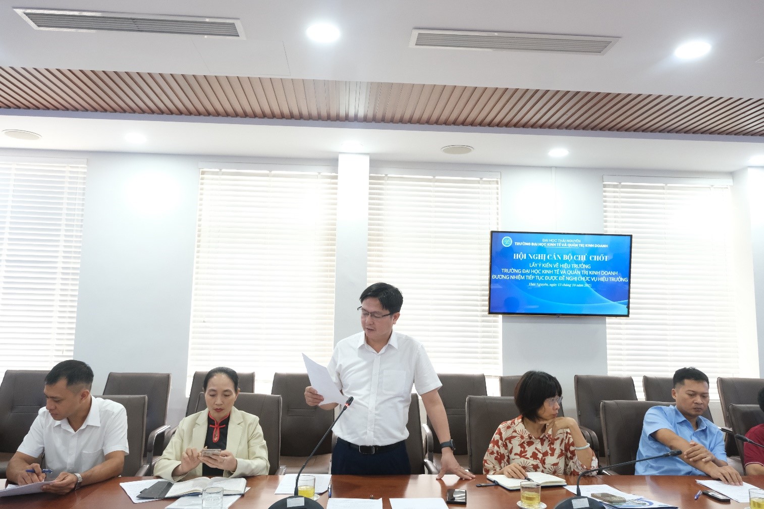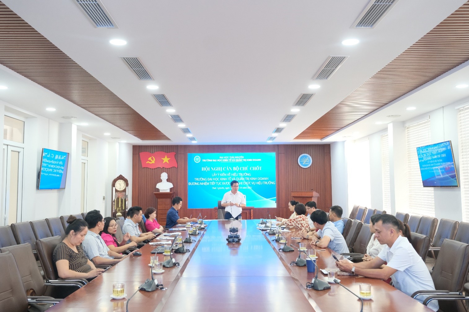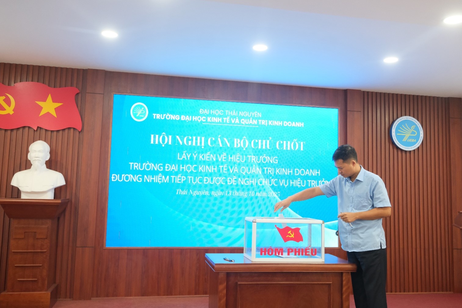 Hội nghị cán bộ chủ chốt thực hiện quy trình quyết định nhân sự Hiệu trưởng Trường Đại học Kinh tế và Quản trị kinh doanh nhiệm kỳ 2025 – 2030 đã thành công tốt đẹp, đảm bảo đúng quy trình, nguyên tắc, phát huy dân chủ, đoàn kết và thống nhất cao.