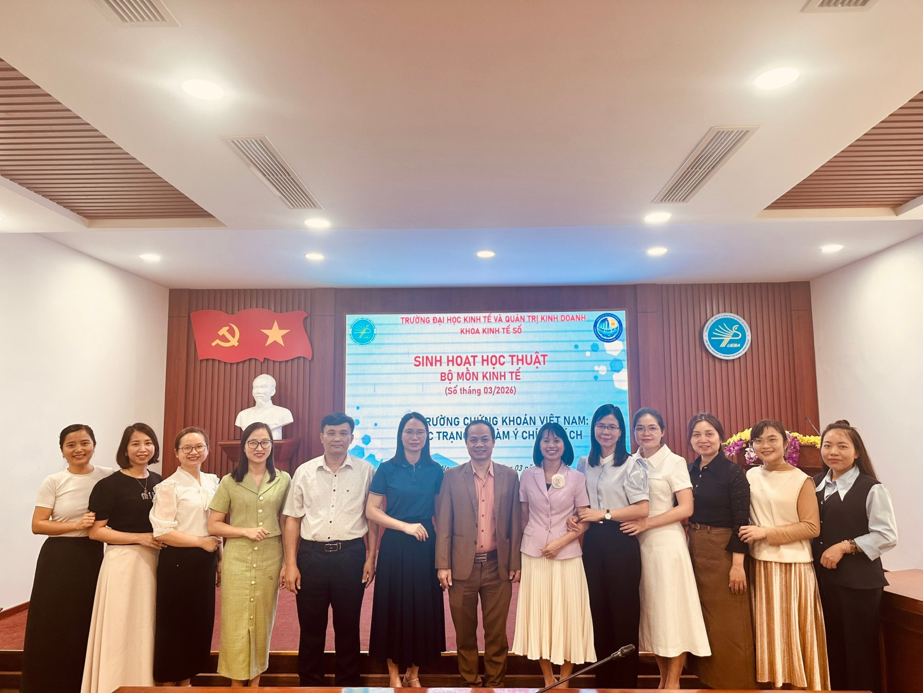Nhằm thúc đẩy hoạt động nghiên cứu khoa học và nâng cao chất lượng đào tạo, ngày 19 tháng 3 năm 2026, bộ môn Kinh tế đã tổ chức buổi sinh hoạt học thuật với 2 chủ đề “Thị trường chứng khoán Việt Nam: Thực trạng và giải pháp” và “Quản lý hoạt động học tập kết hợp - Blended Learning của sinh viên trong giáo dục đại học”
