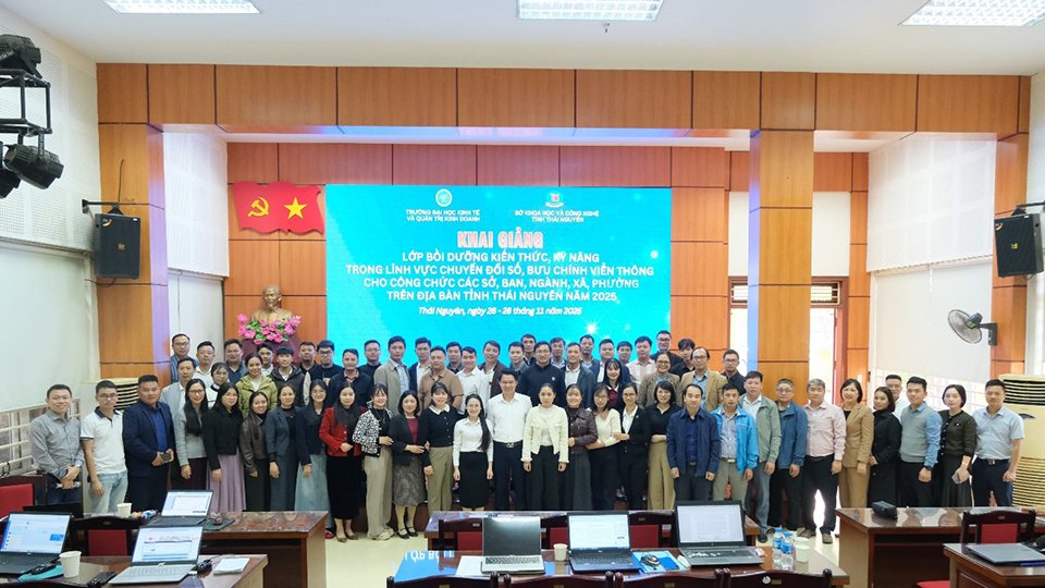 05/12/2025Trường Đại học Kinh tế và Quản trị kinh doanh (TUEBA) phối hợp với Sở Khoa học và Công nghệ tỉnh Thái Nguyên đã tổ chức 02 lớp tập huấn “Bồi dưỡng kiến thức, kỹ năng trong lĩnh vực chuyển đổi số, bưu chính, viễn thông cho công chức các Sở, Ban, ngành; UBND các xã, phường trên địa bàn tỉnh Thái Nguyên năm 2025”.