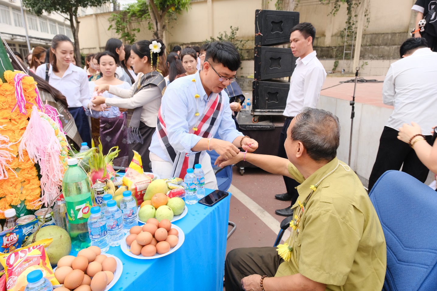 Trong dòng cảm xúc ấy, nghi thức buộc chỉ cổ tay cầu may - nét văn hóa đặc trưng của Tết Bunpimay Lào như một điểm lặng đầy ý nghĩa. Những sợi chỉ nhỏ bé nhưng chứa đựng lời chúc phúc chân thành, là biểu tượng của sự gắn kết, yêu thương và những ước nguyện tốt đẹp trong năm mới. Đồng thời kết nối những tấm lòng, gắn kết tình bạn và tình thân trong một không gian đậm chất văn hóa.